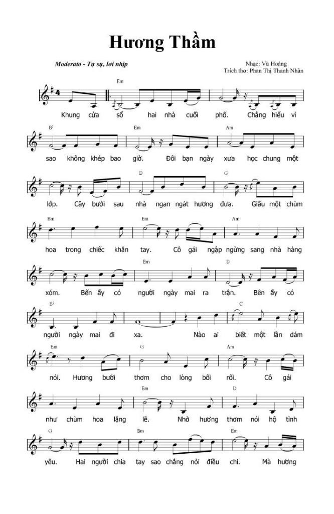 Sheet HƯƠNG THẦM của nhạc sĩ Vũ Hoàng.(ht)