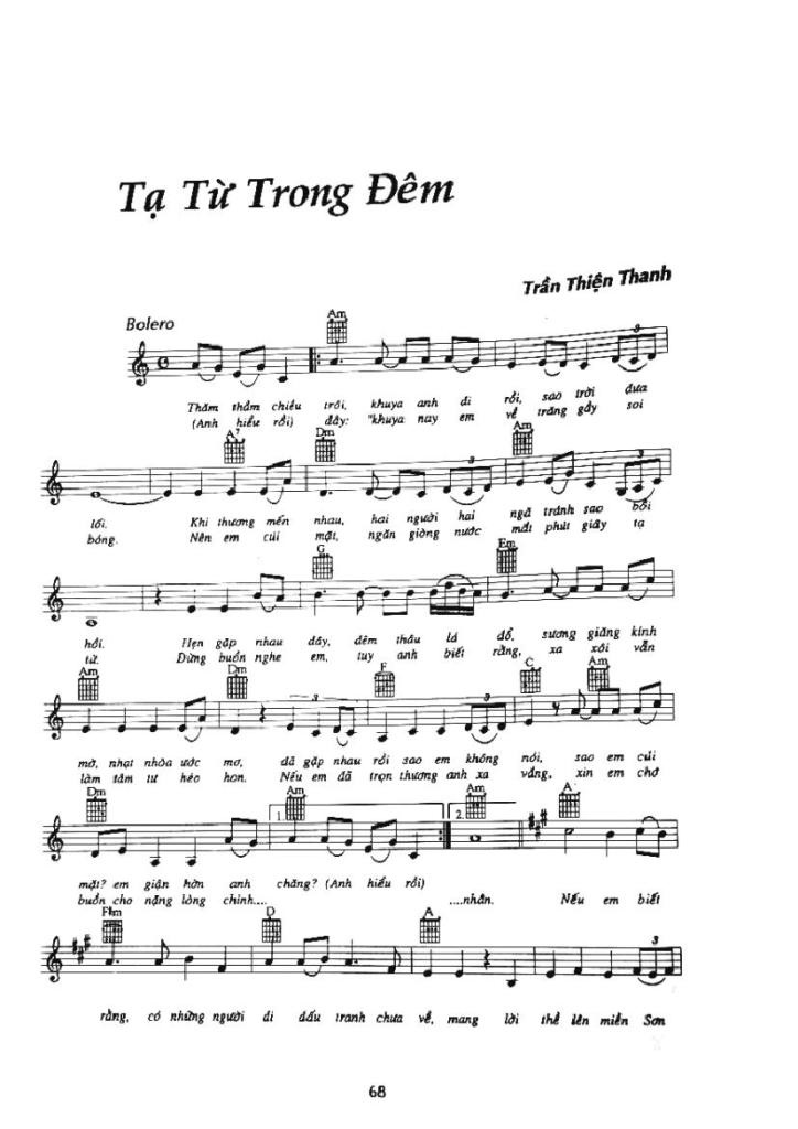 TẠ TỪ TRONG ĐÊM Author. Học làm MC chương trình On. 7:37 PM .BOLERO Tru Tinh VẦN T Sheet TẠ TỪ TRONG ĐÊM của nhạc sĩ Trần Thiện Thanh.(tttd)http://chiasenhac.vn/mp3/vietnam/v-pop/ta-tu-trong-dem~dan-nguyen-ha-thanh-xuan~1235911.html Share with your friends